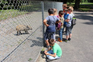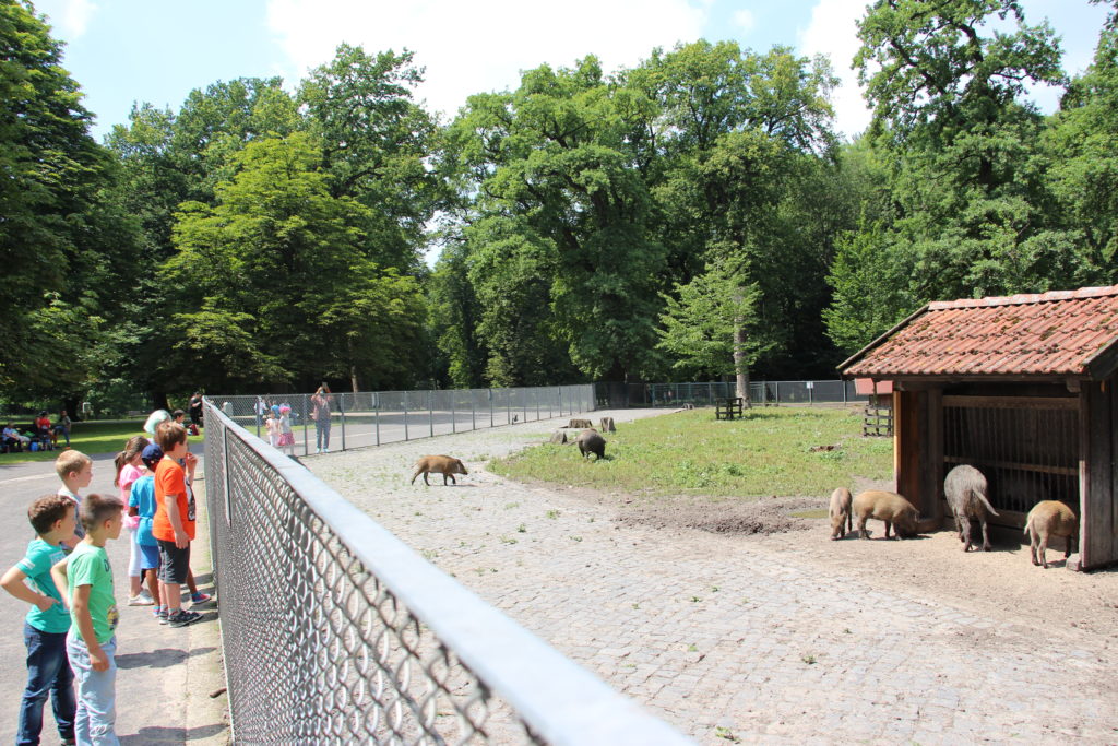 Elefanten und Giraffen gab es zum Bedauern der Kinder leider nicht zu bestaunen. Dass die Wildschweine hinter einem Zaun waren, fand die meisten dann aber doch ganz gut. Wenngleich die Schilder mit der Warnung, die Finger nicht durch die Maschen des Zauns zu stecken, wenig Wirkung zeigten. Wohlbehalten ging es dann aber nach einem Picknick zwischen Hirschen und Wildschweinen wieder zurück in die Grundschule Am Stöckener Bach.